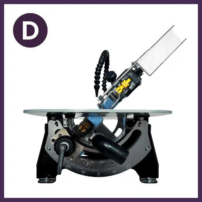 Tête inclinable: angles de coupe D/G jusqu’à 45°