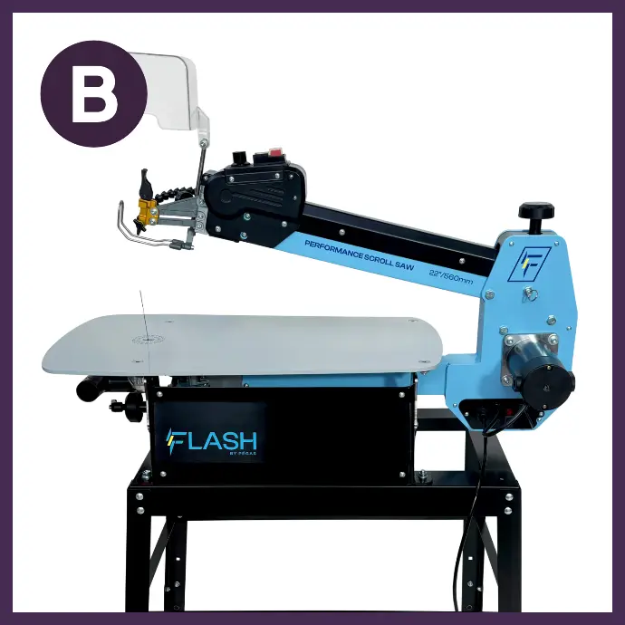disponible en 16'' et 22''Passez à la vitesse Flash : découvrez la nouvelle scie à chantourner qui allie style, performance et plaisir de création. Silencieuse, stable et ultra-confortable, elle vous permet de donner vie à vos projets les plus audacieux. Design fun et excellentes performances : la scie Flash, c’est l’énergie créative qui vous fait passer au niveau supérieur !